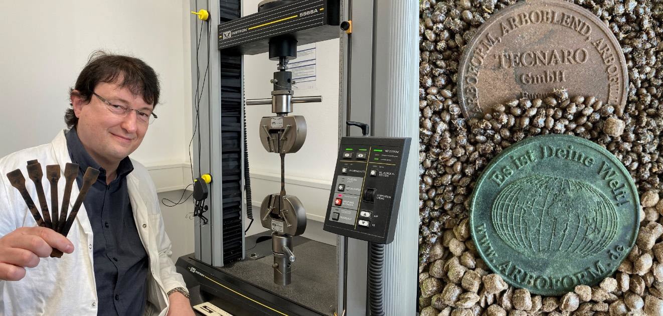 TECNARO F&E-Leiter Dr. Michael Schweizer erforscht im EU Projekt SWEETWOODS hochreine Pflanzenrohstoffe Lignin und Holzzucker für neue ARBOFORM® Biokunststoffgranulate. Fotos TECNARO